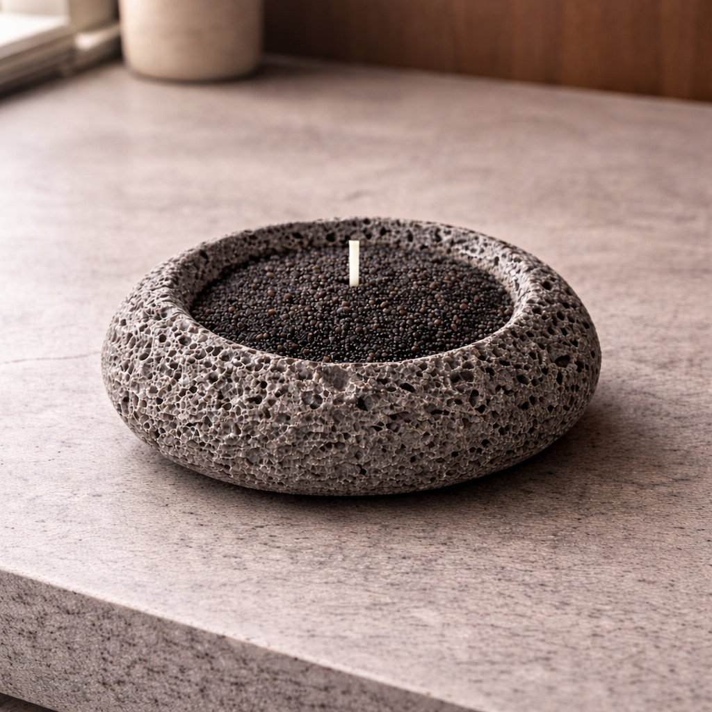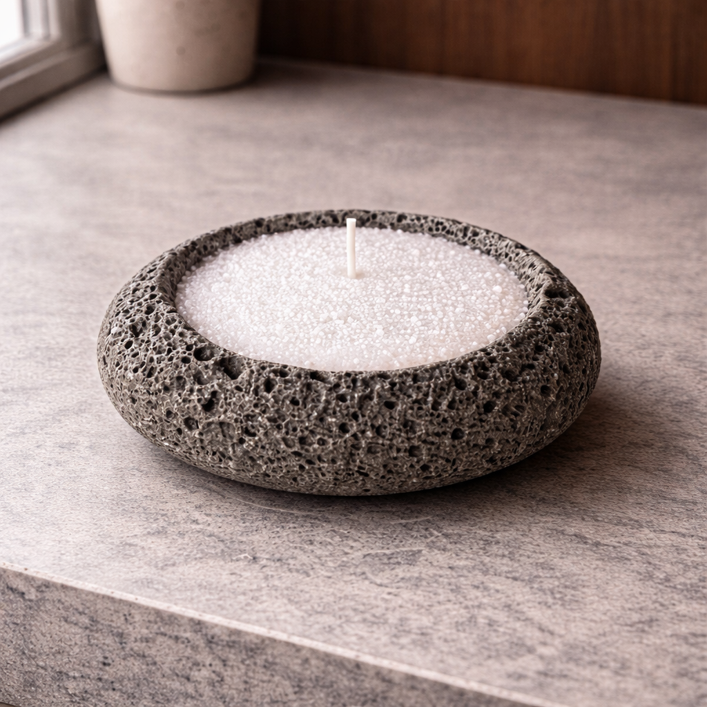 Handmade Icelandic Lava Stone Candle - Refillable Sand Wax Candle